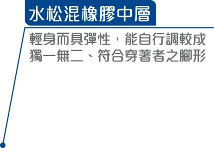 輕身而具彈性,能自行調較成獨一無二、符合穿著者之腳形